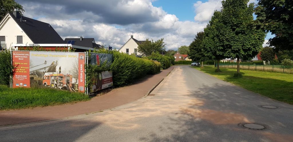 An einem LKW, der in das Baugebiet Kottenwendt fuhr, war durch einen technischen Defekt Hydrauliköl ausgetreten. Die rutschige Spur begann in der Straße „Op de Wisch“ an der Einmündung Bokeler Straße und ging bis in die Straße „Kottenwendt“.